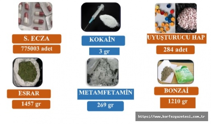 İcra edilen operasyon ve uygulamalar neticesinde aşağıda cins ve miktarları yazılı maddeler ele