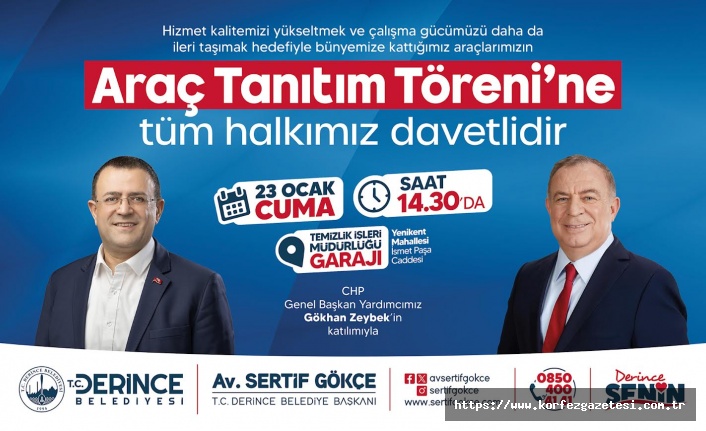 Derince Belediyesi, gerçekleştirilecek tanıtım törenine tüm ilçe halkını davet ederek, belediyenin hizmet gücünü artırmaya yönelik bu adımı birlikte paylaşmayı amaçlıyor.