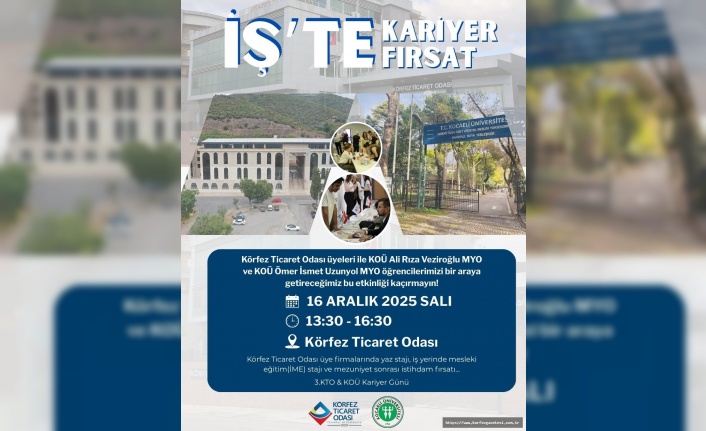 Firmalara stant açma imkânı da sunulan etkinlik, işletmelere görünürlük kazandırırken öğrencilere doğrudan fırsatlar sağlayacak. Körfez Ticaret Odası ve Kocaeli Üniversitesi işbirliğiyle düzenlenen Kariyer Günü, gençlerin mesleki gelişimine katkı sağlamayı ve işletmelerin nitelikli iş gücüne erişimini kolaylaştırmayı hedefliyor.