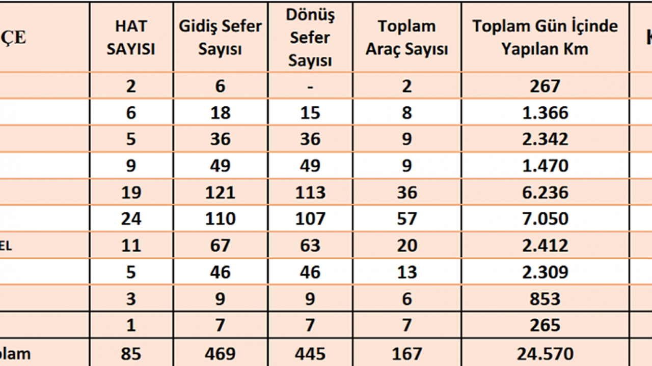 Mahalle statüsüne dönüşen köylerde yaşanan vatandaşımıza; günlük 85 hat, 167 araç, 914 sefer, yaklaşık 24.570 km köyler arası, ilçe merkezlerine ve şehir merkezine toplu taşıma hizmeti verilmesi planlanıyor.