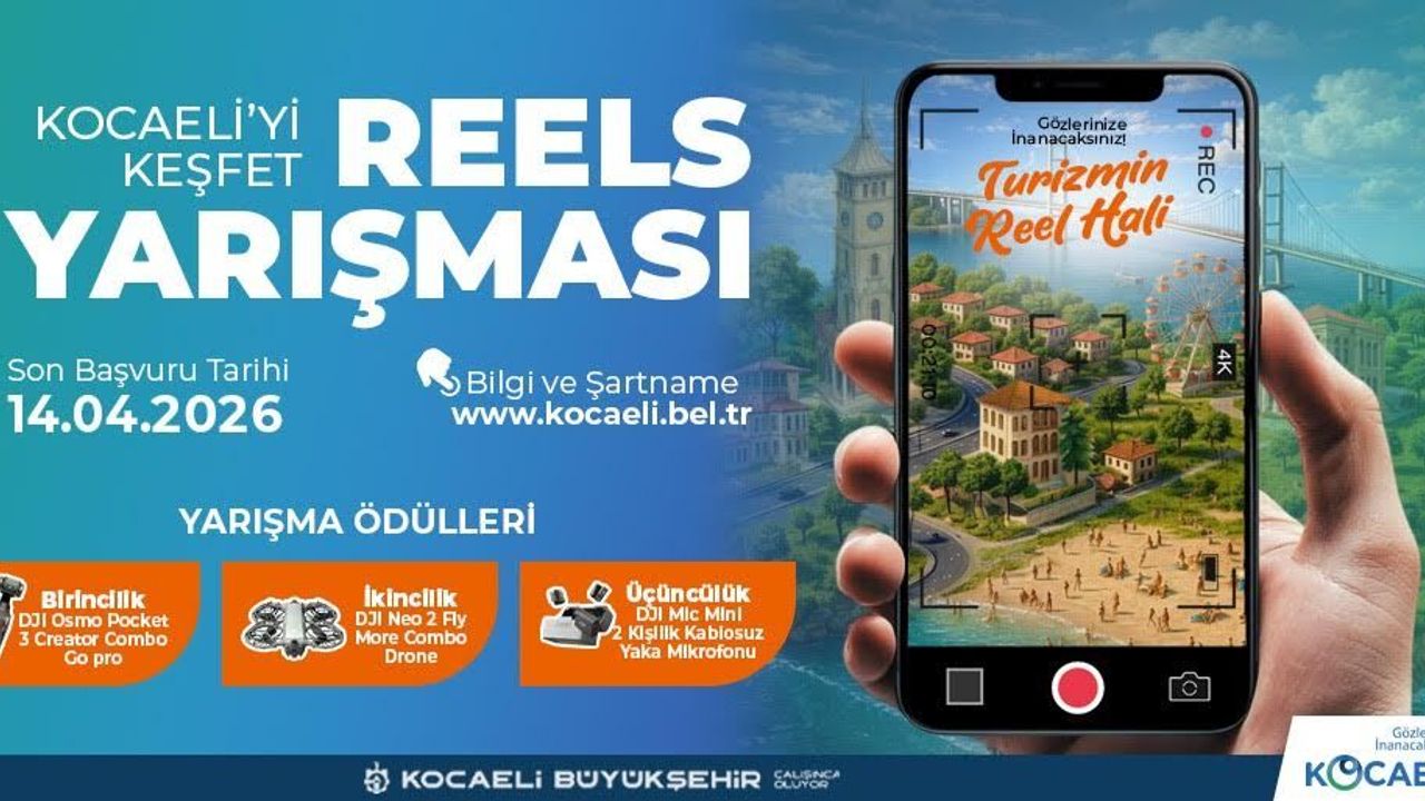 Kocaeli Büyükşehir Belediyesi, şehrin turistik mekânları ve kültürel değerlerini dijital ortamda tanıtmak amacıyla “Kocaeli’yi Keşfet Reels Video Yarışması”nı başlattı. Turizm Haftası etkinlikleri kapsamında düzenlenen yarışmada katılımcılar, Kocaeli’nin güzelliklerini 60 saniyelik videolarla anlatacak.